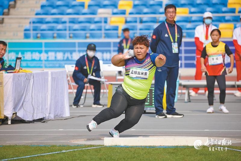 名將孟根吉米素在本屆賽事上斬獲女子f41 級(jí)鉛球和鐵餅兩枚金牌。