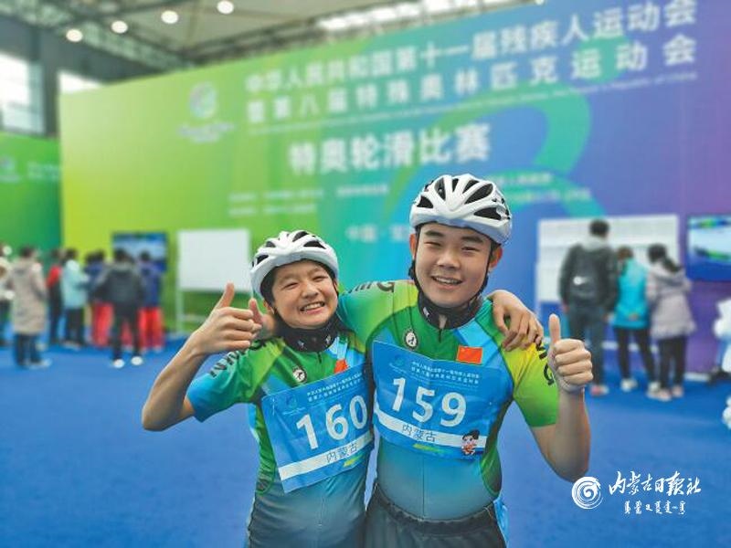 10月27日,特奧輪滑比賽16—20歲組男子2×200米接力比賽中,內(nèi)蒙古運(yùn)動(dòng)員閆俊杰、趙鑫格獲得金牌。