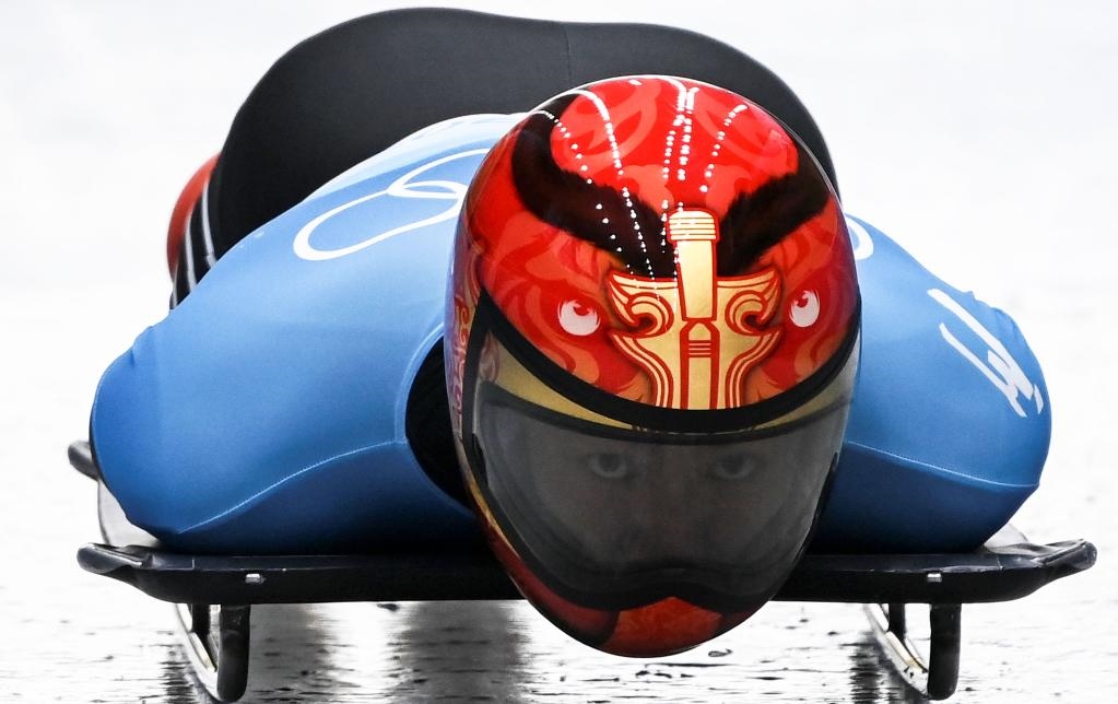 2月10日,中國(guó)選手殷正在北京冬奧會(huì)男子鋼架雪車(chē)項(xiàng)目比賽中。新華社記者賀長(zhǎng)山攝