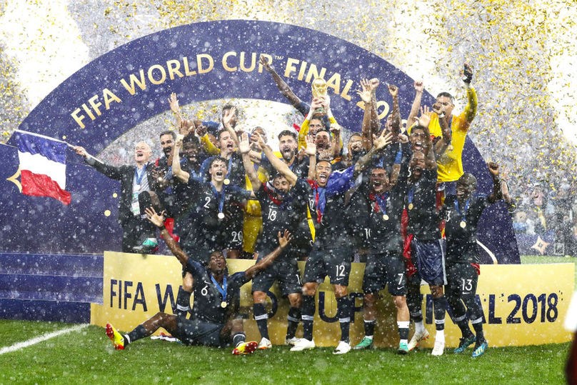 2018年7月15日,法國(guó)隊(duì)獲得俄羅斯世界杯冠軍。新華社記者曹燦攝