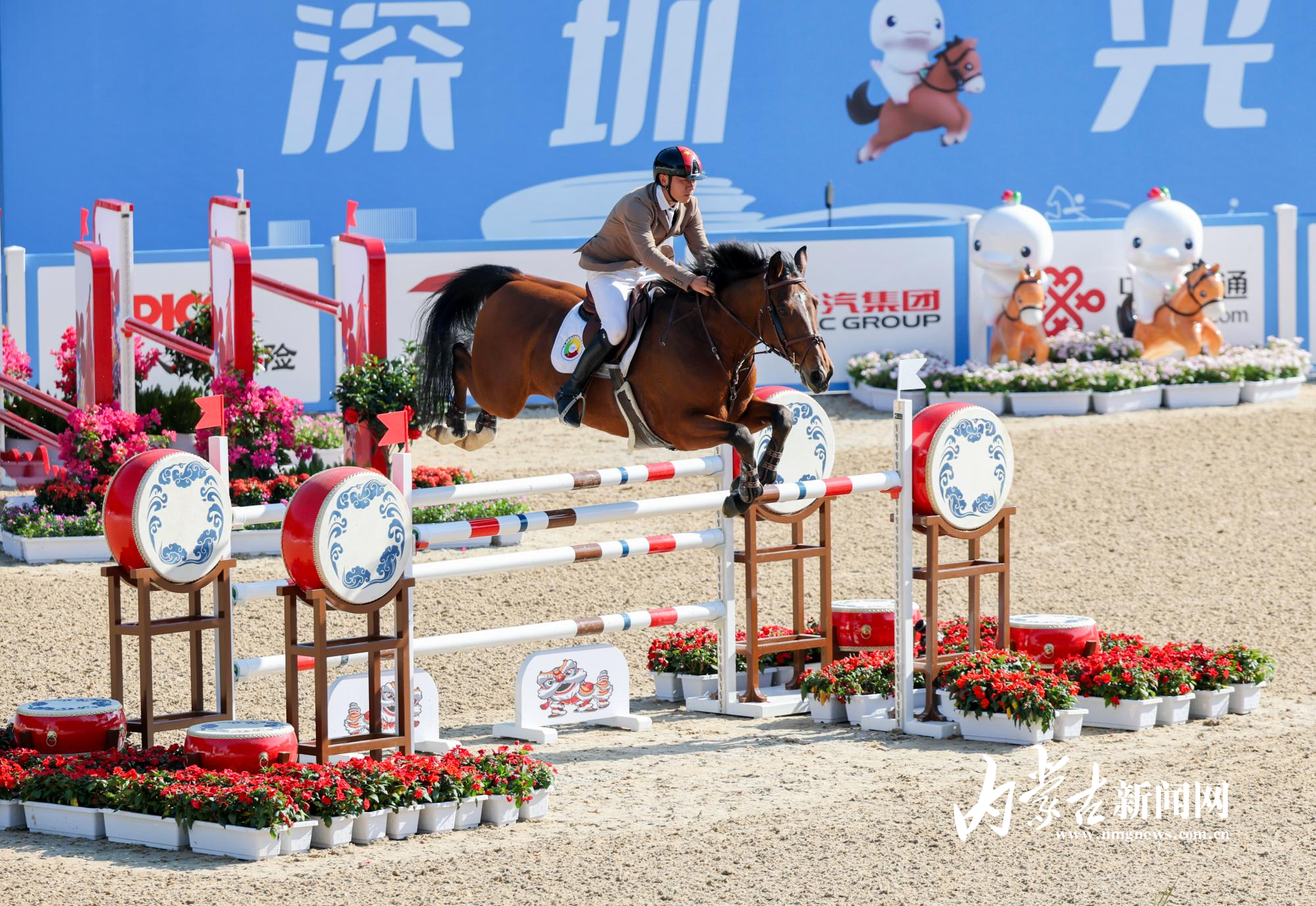11月17日,第十五屆全國運動會馬術(shù)項目場地障礙團體賽在深圳市光明國際馬術(shù)中心進行,由達日瑪、劉同晏、張睿、韓豐組成的內(nèi)蒙古隊憑借兩輪穩(wěn)定發(fā)揮,以總罰分31分的成績斬獲銅牌。