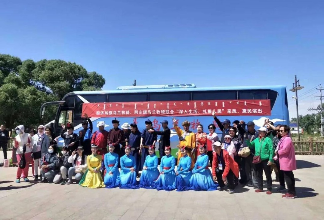 5月28日至6月2日,阿拉善左旗文化旅游局組織阿拉善左旗烏蘭牧騎11名隊員抵達額濟納旗,開展了為期6天的“深入生活,扎根人民”采風創(chuàng)作、惠民演出活動。額濟納旗文化旅游廣電局相關(guān)領導及烏蘭牧騎隊員們?nèi)膛阃瑓⑴c此次活動。