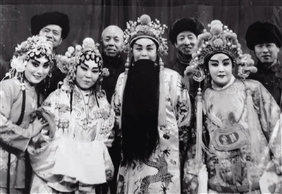 上世紀80年代,前排從左至右任翠芬、亢金銳、楊勝鵬、冀素梅謝幕合影。