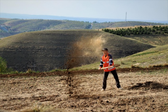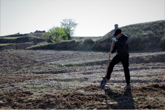 邊墻壕村是個小村莊,在村口遇見一對夫婦正在播種,據(jù)介紹全村現(xiàn)有20多戶人家四五十口人,年輕人都出去打工了,剩下些村民老人居多。讓我們再次把鏡頭對準邊墻下春播的百姓。