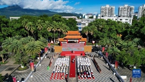 這是7月8日拍攝的五指山“上山爽一夏 故園·畢業(yè)季”暨州府故園文化節(jié)啟動(dòng)儀式現(xiàn)場(無人機(jī)照片)。