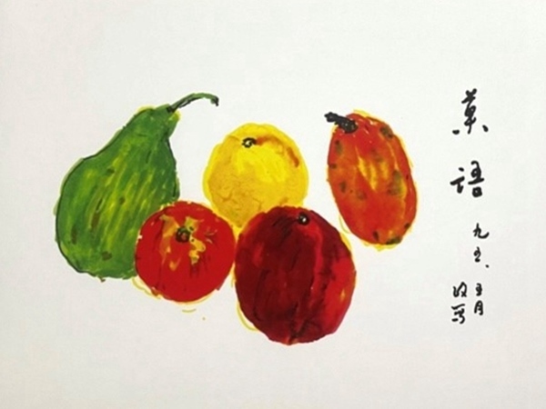 農(nóng)歷進(jìn)入了立夏,桃李遍天下的李政道,對(duì)著面前果盤(pán)里紅黃綠紫的水果,畫(huà)了一張名為《果語(yǔ)》的寫(xiě)生畫(huà)寄給鄭志鵬。在那個(gè)純真的時(shí)代,在這張小小的賀卡上,沒(méi)有祝福文字,只有簡(jiǎn)潔的藝術(shù)表達(dá)和深切的內(nèi)心感受。這色彩豐富的《果語(yǔ)》,不知包含著多少祝福和希望??!
