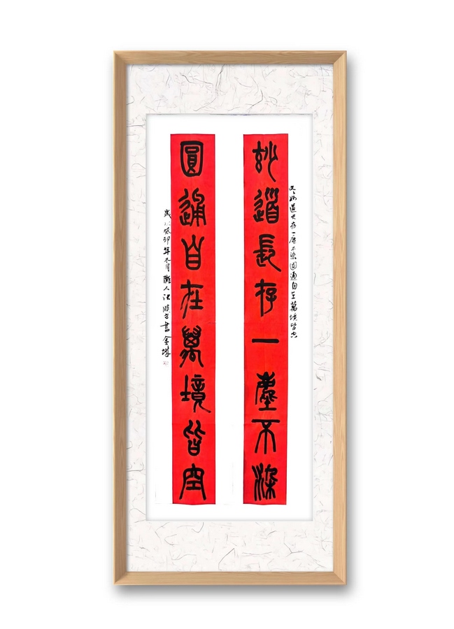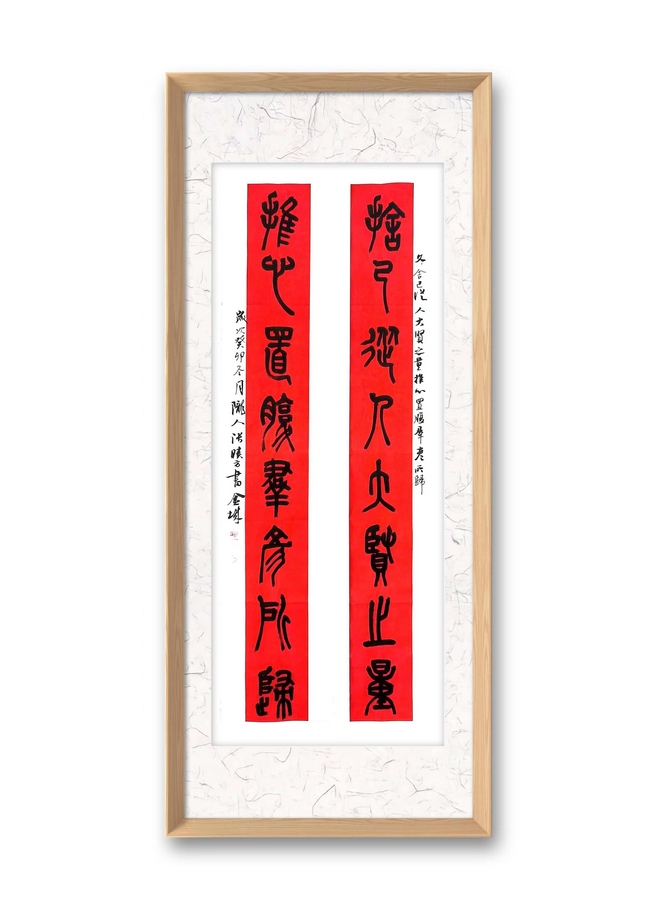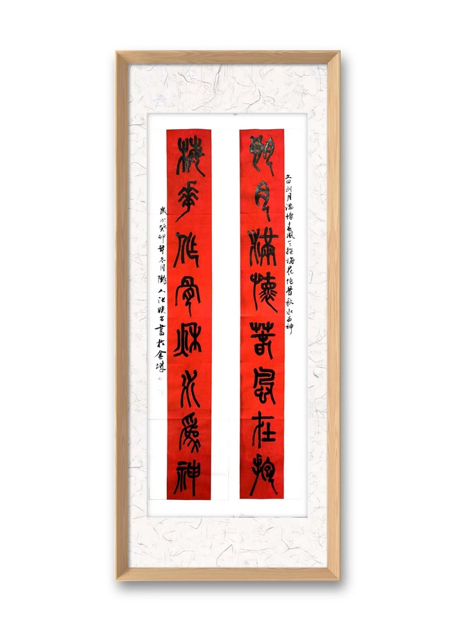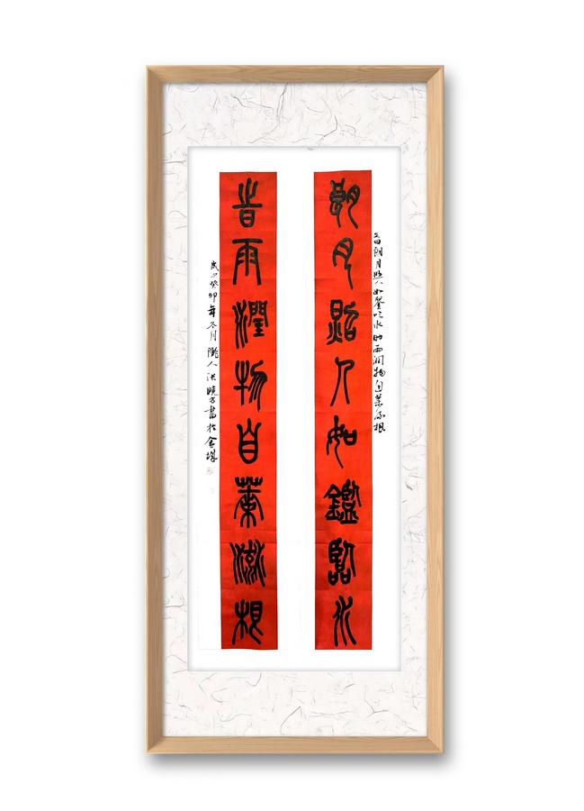 張小方先生在臨古取經(jīng)的同時,也進(jìn)行了大量的臨創(chuàng)轉(zhuǎn)換,以他擅長的楹聯(lián)形式創(chuàng)作了很多優(yōu)秀作品,他筆下的石鼓文楹聯(lián)不僅保留了傳統(tǒng)文化的韻味,更融入了自己的藝術(shù)感悟和用筆特點。他的作品筆力雄健,氣韻生動,既有古人的神韻,又有今人的情懷。(完)