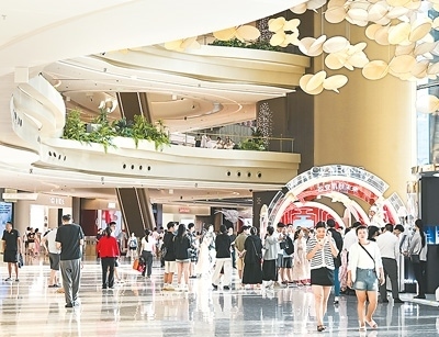 游客在cdf三亞國(guó)際免稅城C區(qū)全球美妝廣場(chǎng)游覽購(gòu)物。中免集團(tuán)供圖