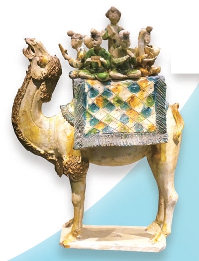 三彩載樂駱駝俑。