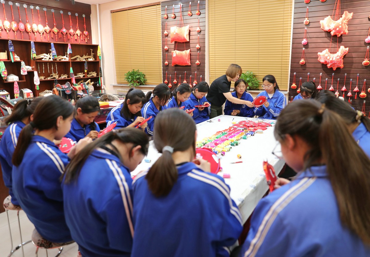 吳斯琴正在向同學(xué)們傳授刺繡技巧