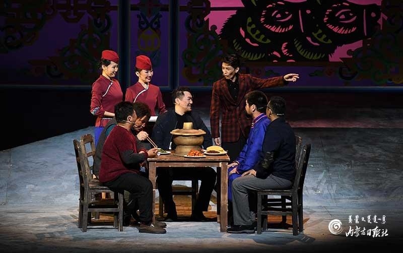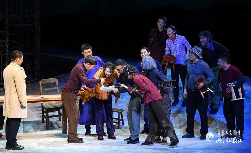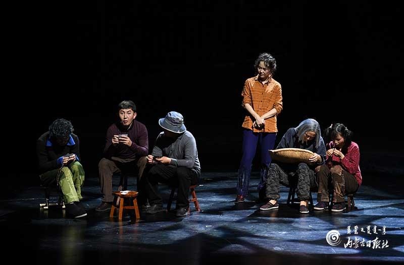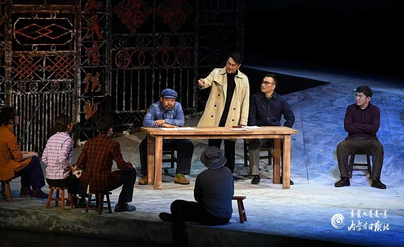參演《紅手印》的都是來(lái)自草原的蒙古族演員,不僅要完成漢語(yǔ)的臺(tái)詞,還要熟練自然地講出大量?jī)?nèi)蒙古西部方言對(duì)白?!皩?duì)于話劇演員來(lái)說(shuō),臺(tái)詞功底太重要了。為了練好方言,我們好多演員早起練功的時(shí)候嘴里都念念有詞地說(shuō)著西部方言。”演員烏仁朝魯門(mén)說(shuō)。他扮演的新扎木村主任令人印象深刻,一個(gè)一心想帶百姓致富卻屢遭失敗的老黨員形象?!爸氨硌輾v史題材的話劇大多是從影像和資料了解人物,這部戲的題材貼近觀眾們的現(xiàn)實(shí)生活,必須接地氣才能得到認(rèn)可。我通過(guò)寫(xiě)人物小傳的方式,深挖村主任的人物個(gè)性和從失望到燃起希望的內(nèi)心世界,讓觀眾能夠認(rèn)可這個(gè)形象?!睘跞食旈T(mén)說(shuō)。