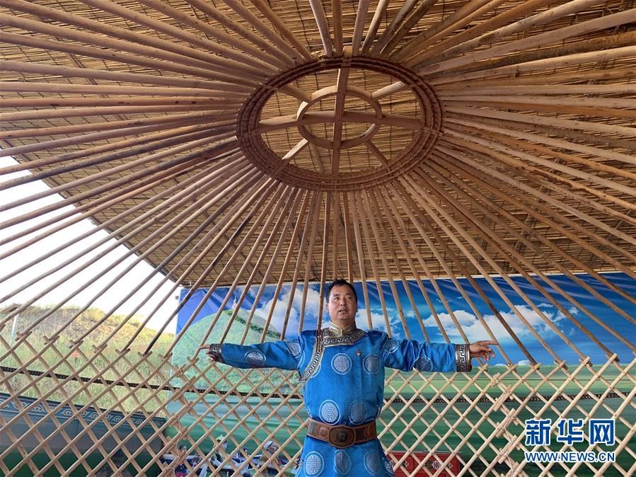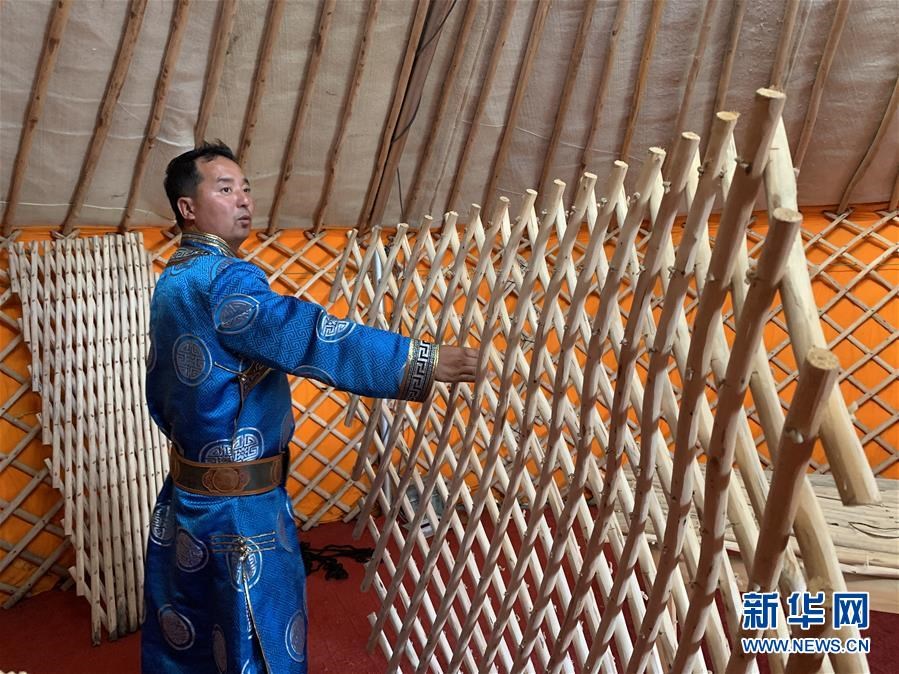 雖然功能多了,材質(zhì)新了,但蒙古包的老構造、老手藝沒有變,布仁巴雅爾仍然用皮繩編織哈那,堅持給穹頂加上陶腦,沿用烏尼撐起包頂。“再怎么創(chuàng)新發(fā)展、適應市場化,傳統(tǒng)文化也不能丟?!彼f。