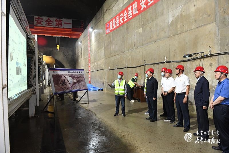8月12日,自治區(qū)黨委書記、人大常委會主任石泰峰來到興安盟科右前旗察爾森鎮(zhèn)引綽濟遼2號隧洞輸水管線建設現(xiàn)場,了解工程進展情況。內(nèi)蒙古日報記者 袁永紅 攝