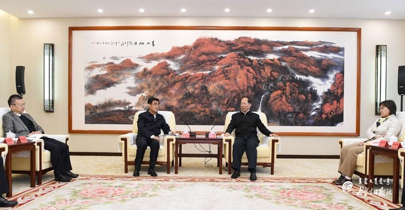 10月12日,自治區(qū)黨委書記、人大常委會(huì)主任石泰峰,自治區(qū)黨委副書記、自治區(qū)主席布小林,在呼和浩特會(huì)見中國華能集團(tuán)有限公司黨組書記、董事長舒印彪一行。內(nèi)蒙古日報(bào)記者 袁永紅 攝