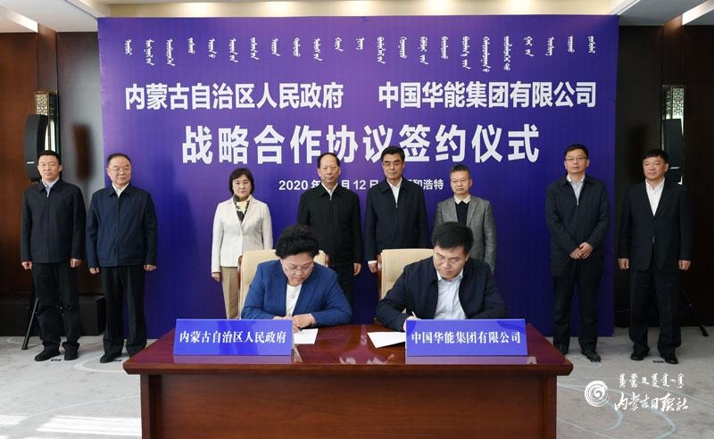10月12日,內(nèi)蒙古自治區(qū)人民政府與中國華能集團(tuán)有限公司在呼和浩特簽署戰(zhàn)略合作協(xié)議。自治區(qū)黨委書記、人大常委會(huì)主任石泰峰,自治區(qū)黨委副書記、自治區(qū)主席布小林,中國華能集團(tuán)有限公司董事長舒印彪見證簽約。