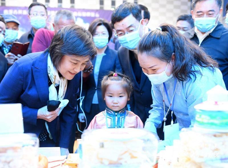 10月17日,自治區(qū)黨委副書記、自治區(qū)主席布小林,在全區(qū)推進(jìn)奶業(yè)振興暨民族傳統(tǒng)奶制品產(chǎn)業(yè)發(fā)展現(xiàn)場會(huì)上參觀各盟市民族傳統(tǒng)奶制品產(chǎn)品展示。內(nèi)蒙古日報(bào)記者 韓卿立 攝