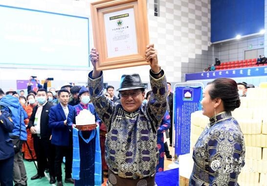 上海大世界基尼斯總部頒證官胡杰,對鑲黃旗乳香飄乳業(yè)有限公司制作的“浩乳德(拼接)——禮儀奶酪盤”進行了現(xiàn)場認證,并頒發(fā)“大世界基尼斯之最”證書。