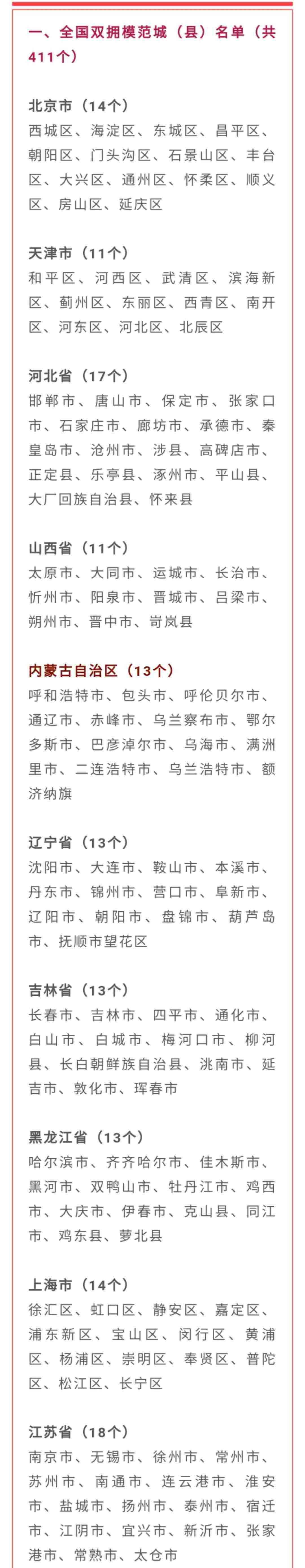 10月20日,全國雙擁模范城(縣)命名暨雙擁模范單位和個(gè)人表彰大會(huì)在北京舉行,大會(huì)宣讀了關(guān)于命名411個(gè)全國雙擁模范城(縣),關(guān)于表彰全國愛國擁軍模范單位和擁政愛民模范單位,關(guān)于表彰全國愛國擁軍模范和擁政愛民模范的決定。內(nèi)蒙古自治區(qū)13個(gè)市縣(旗)榮膺全國雙擁模范城(縣),1個(gè)鎮(zhèn)、2名全國愛國擁軍模范受到表彰。全部名單如下:
