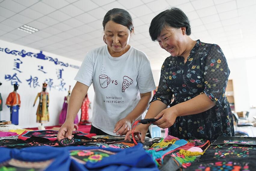 2019年8月,通遼市科左中旗哈根廟嘎查依托傳統(tǒng)手工藝通遼刺繡的資源優(yōu)勢,成立了皮毛絨刺繡專業(yè)合作社,對當(dāng)?shù)剞r(nóng)牧民和貧困戶免費培訓(xùn)指導(dǎo),學(xué)成后提供崗位,實現(xiàn)在家門口就業(yè)。
