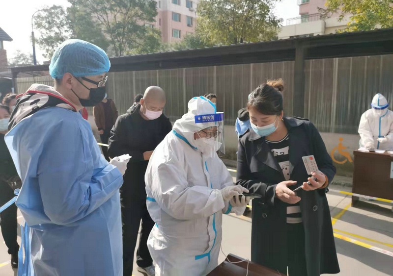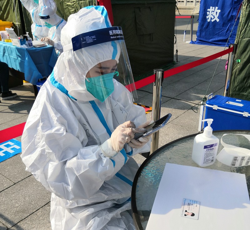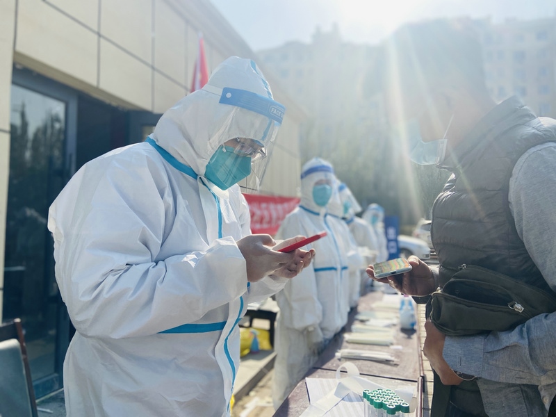 “昨天分配的任務是信息采集,因為第二輪核酸檢測要使用新的采集系統,所以今天早晨7:00到崗后,大家開始學習信息采集系統的使用。信息采集不能出任何差錯,每一個信息采集員都很緊張,謹慎操作每一步。”在呼和浩特市玉泉區(qū)大召社區(qū)核酸檢測點參加志愿服務的張華媛說,8:00準時開始第二次核酸檢測,直到下午2:00換崗,連續(xù)6小時緊張謹慎的信息采集,中途沒有休息過,整個身體感覺有點僵了。雖然很累,但是能成為抗疫戰(zhàn)士中的一員,和醫(yī)護人員、社區(qū)工作者及其他志愿者一起為呼和浩特抗疫貢獻自己的一份力,是一件非常有意義的事。