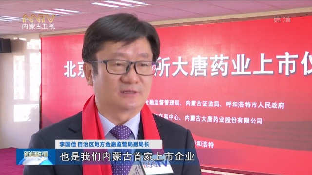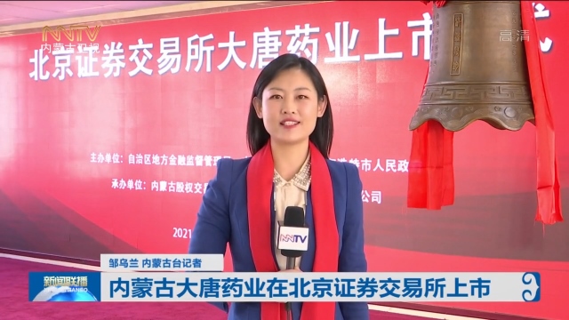 鄒烏蘭內(nèi)蒙古臺(tái)記者:這里是內(nèi)蒙古股權(quán)交易中心,隨著北京證券交易所鳴鐘開(kāi)市,內(nèi)蒙古大唐藥業(yè)股份有限公司在北交所開(kāi)市當(dāng)天正式上市,這也是內(nèi)蒙古第一家在北交所上市的企業(yè),標(biāo)志著內(nèi)蒙古率先參與北交所改革并實(shí)現(xiàn)重要突破。