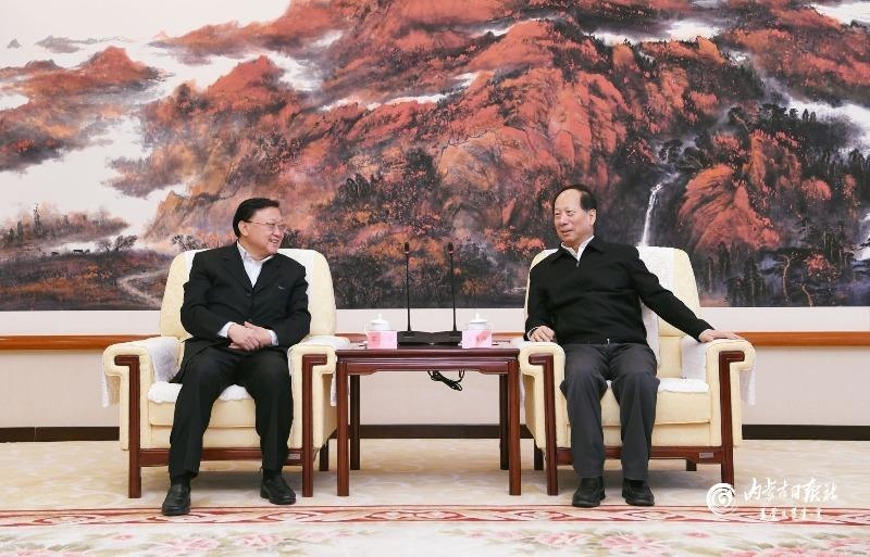 1月17日,自治區(qū)黨委書記、人大常委會(huì)主任石泰峰在呼和浩特會(huì)見中國交通建設(shè)集團(tuán)黨委書記、董事長王彤宙。內(nèi)蒙古日?qǐng)?bào)社融媒體記者袁永紅攝