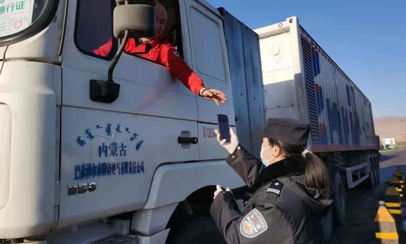 在巴彥淖爾市烏拉特中旗牧羊海疫情防控服務(wù)點,工作人員正對來往的車輛人員進行檢測、掃碼、詢問、登記……