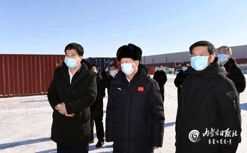 2月4日,自治區(qū)黨委書記、人大常委會主任石泰峰來到二連浩特市環(huán)宇物流園區(qū),了解疫情防控和作業(yè)運行情況。內蒙古日報社融媒體記者袁永紅攝