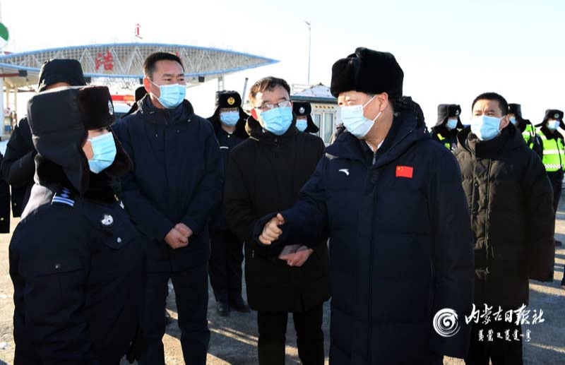2月4日,自治區(qū)黨委書記、人大常委會主任石泰峰來到錫林郭勒盟二連浩特國道208卡口,了解人員、車輛出入檢查情況。內蒙古日報社融媒體記者袁永紅攝
