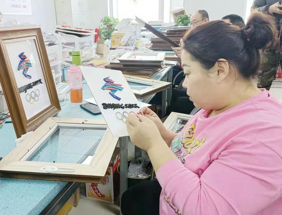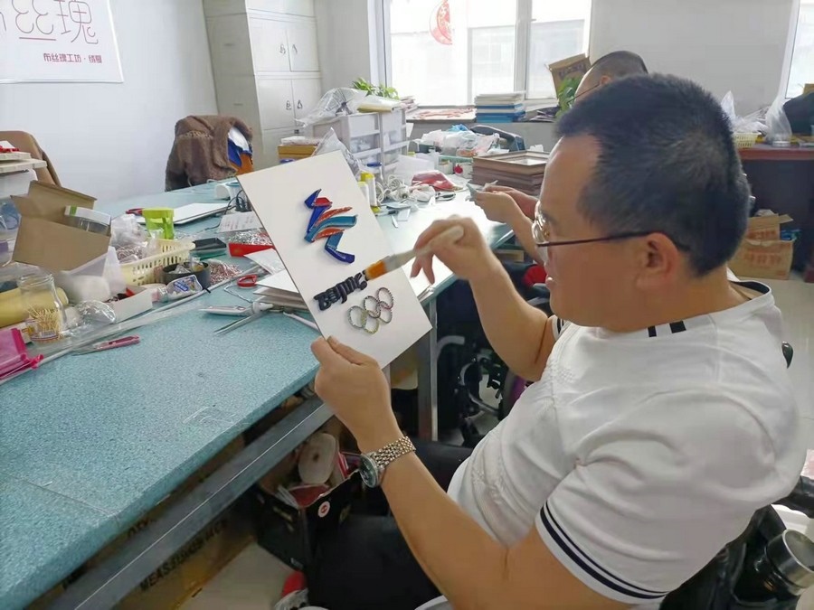 呼和浩特市殘聯(lián)相關負責人介紹,用盤扣工藝制作的北京冬奧會、冬殘奧會會徽,是將此工藝與服裝脫離開來,以裝飾畫的形式展現(xiàn)。中式盤扣具有紐帶和橋梁意義,借此表達內(nèi)蒙古殘疾人對北京冬奧會和冬殘奧會的關注,也讓內(nèi)蒙古殘疾人堅韌不拔、自強不息的精神以這個作品為紐帶傳播到世界各地。