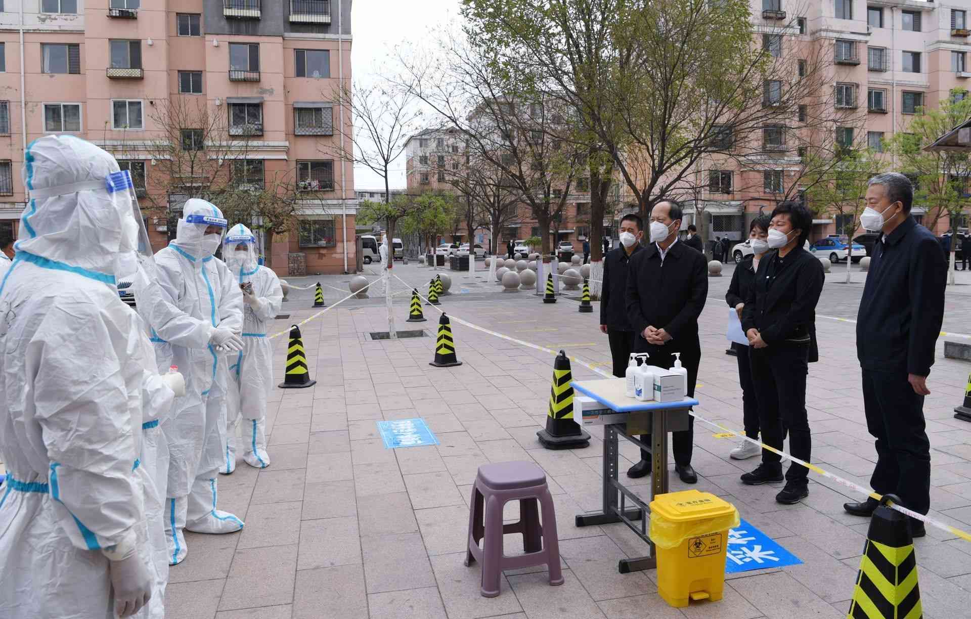 4月26日,自治區(qū)黨委書記、人大常委會(huì)主任石泰峰來到包頭市九原區(qū)龍?jiān)沸^(qū)B區(qū),了解疫情防控封控情況。內(nèi)蒙古日?qǐng)?bào)社融媒體記者 袁永紅攝
