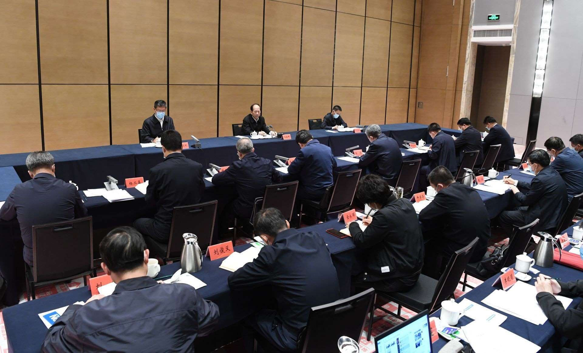 4月26日,自治區(qū)黨委書記、人大常委會(huì)主任石泰峰在包頭市疫情防控指揮部主持召開座談會(huì),聽取包頭市疫情防控工作匯報(bào)并講話。內(nèi)蒙古日?qǐng)?bào)社融媒體記者 袁永紅攝