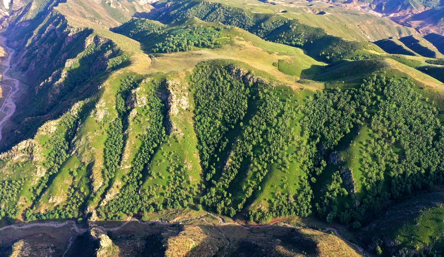 盛夏時(shí)節(jié),位于呼和浩特市回民區(qū)境內(nèi)的井爾梁,滿目蒼翠,從山頂往下望,山巒疊嶂,草甸如茵,溝壑縱橫,如詩如畫。 井爾梁最高海拔為2110米,井爾梁高山草原即位于井爾梁、摩天嶺地段,占地約17055畝,是呼和浩特大青山生態(tài)旅游帶重要節(jié)點(diǎn)之一。