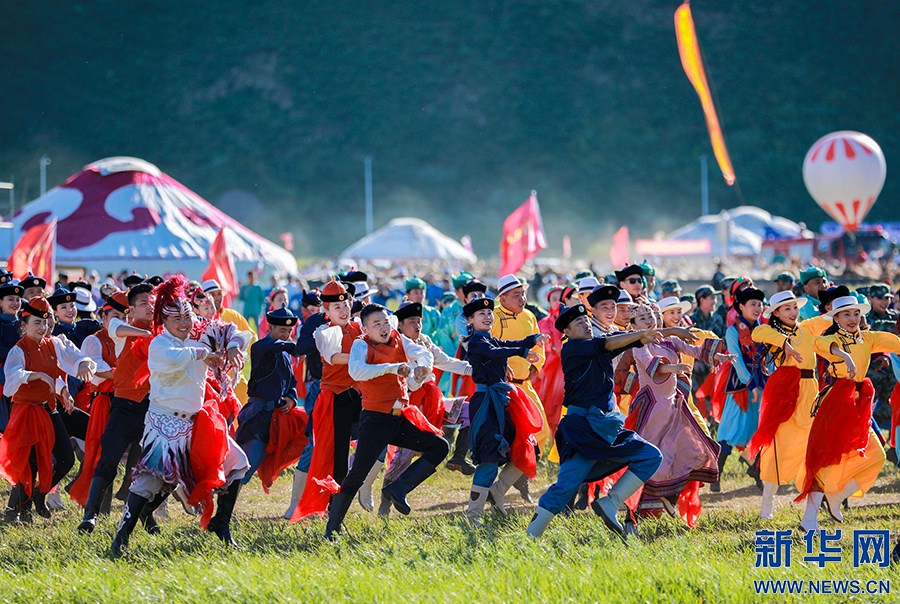 8月8日烏蘭牧騎方陣的隊(duì)員們在開幕式上表演。新華網(wǎng)發(fā)(丁根厚攝)
