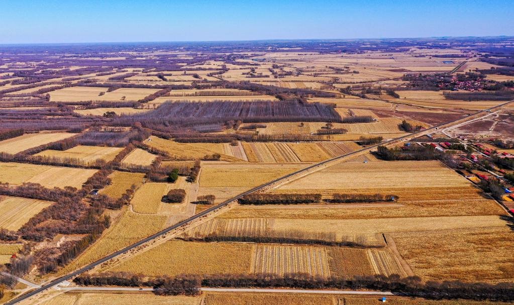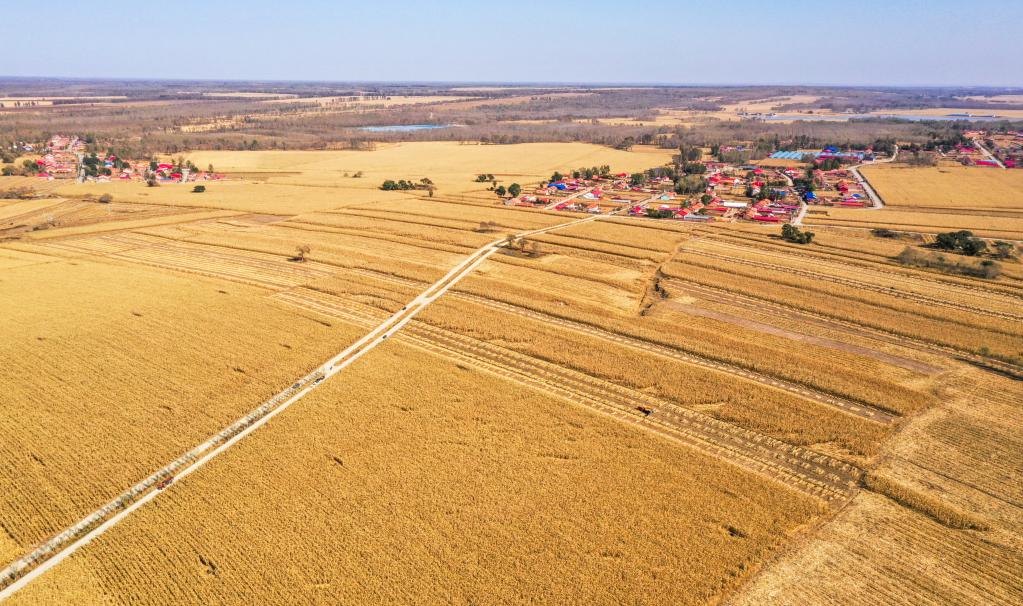 10月18日,這是通遼市奈曼旗新鎮(zhèn)正在收獲的玉米地。(無(wú)人機(jī)照片 新華社記者 連振 攝)