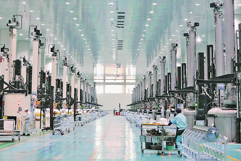 內(nèi)蒙古與時俱進(jìn)優(yōu)化能源資源開發(fā)利用方式,推動由化石能源大區(qū)向清潔能源大區(qū)轉(zhuǎn)變。圖為位于包頭市的雙良光伏產(chǎn)業(yè)園單晶硅生產(chǎn)車間(2022年10月20日攝)。