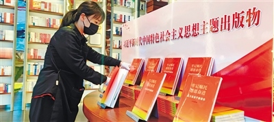 5月4日,內(nèi)蒙古新華書店工作人員整理擺放《牢記囑托感恩奮進——五大任務干部讀本》。牟野攝