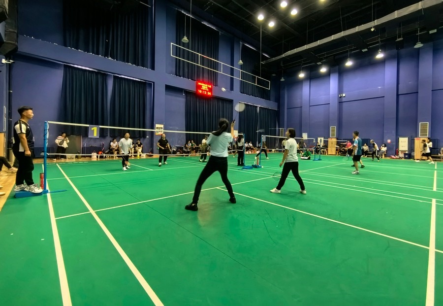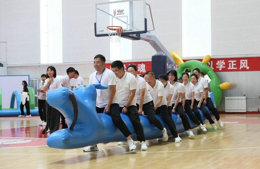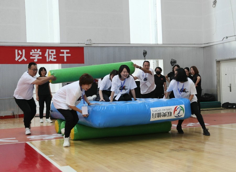 在隨后進(jìn)行的趣味運(yùn)動(dòng)會(huì)中,依次進(jìn)行了“陸地冰壺”“龜兔賽跑”“漢諾塔”等比賽項(xiàng)目。而在此前一天,羽毛球等項(xiàng)目也已開賽。賽場(chǎng)上,運(yùn)動(dòng)員們團(tuán)結(jié)一心,奮力拼搏。觀眾席上,“最強(qiáng)氣氛組”組成強(qiáng)大的啦啦隊(duì),為參賽選手們吶喊助威、加油鼓勁,共同凝聚團(tuán)隊(duì)的精神,一起分享比賽的快樂。