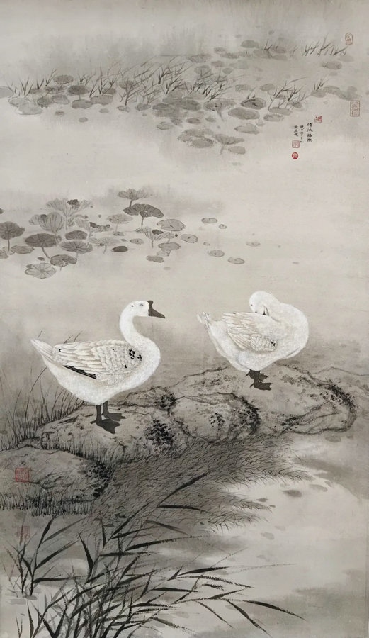 故宮博物院館員、藝術(shù)學(xué)博士后張帥表示,這次參展帶來(lái)《清流鵝除》《安居樂(lè)業(yè)》兩幅作品,作品主要以傳統(tǒng)水墨花鳥(niǎo)畫(huà)為主。想表現(xiàn)人與自然和諧的關(guān)系,傳達(dá)一種中國(guó)畫(huà)的意境。