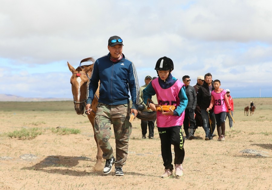 7月16日上午,內(nèi)蒙古自治區(qū)第34屆草原那達(dá)慕24公里賽馬,在錫林浩特希日塔拉草原舉行。來自蘇尼特右旗的13歲少年安琪爾,騎乘叔叔青格勒家的新6歲馬,在最后百余米沖刺階段,超越對(duì)手獲得冠軍。