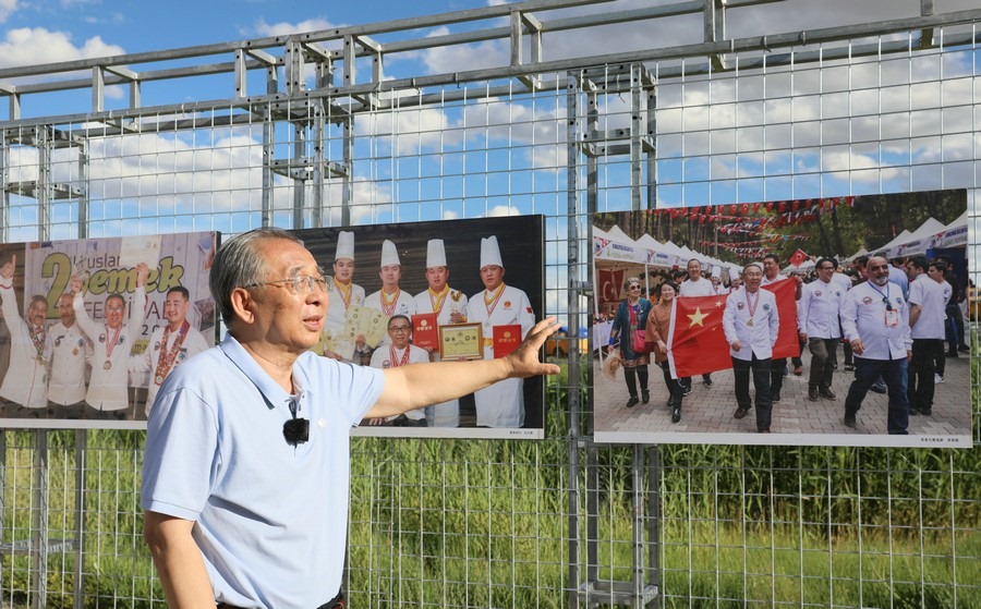 7月28日,第14屆《食色世界》攝影大展,在四子王旗格根塔拉草原旅游中心開展。圖為本次攝影展策展人、中國攝影家協(xié)會會員、中國人像攝影學(xué)會副會長、內(nèi)蒙古攝影家協(xié)會名譽主席郎立興正在介紹展品。