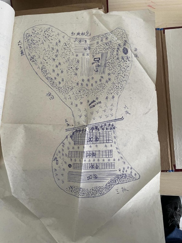 ??1975年繪制的阿魯柴登苗圃示意圖。新華每日電訊記者張典標(biāo)攝
