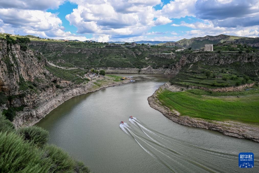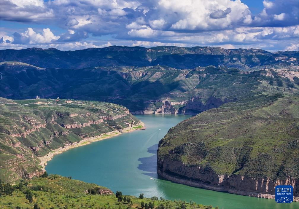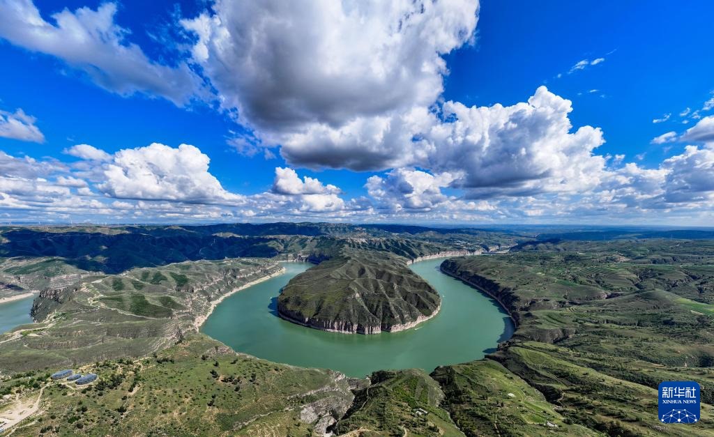 ??這是8月12日拍攝的黃河老牛灣風(fēng)光(無(wú)人機(jī)照片)。