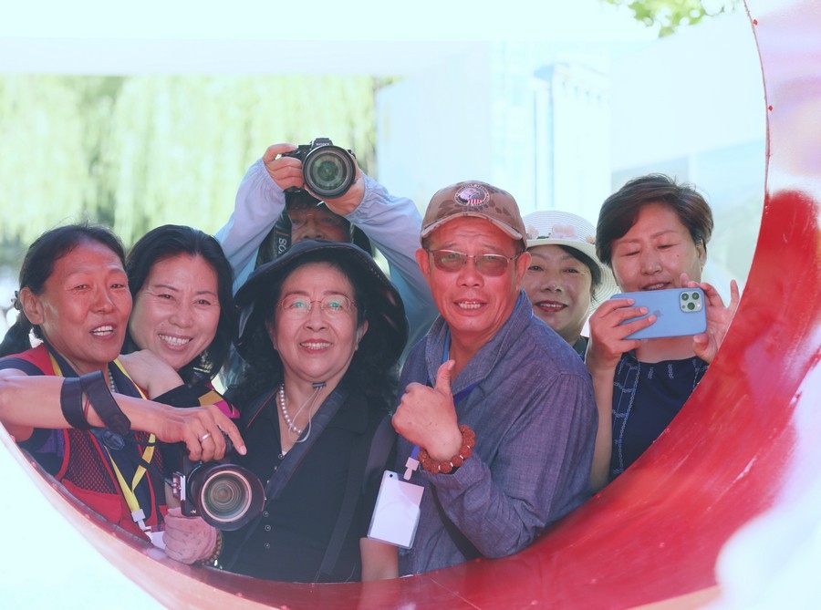 游客在呼和浩特?cái)z影周參觀拍照