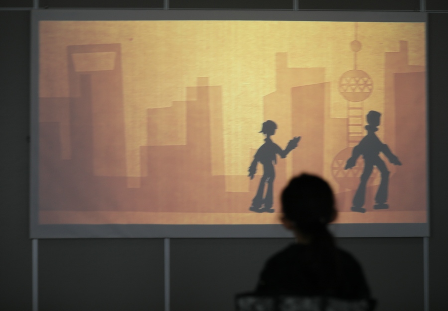 一名小朋友在觀看動(dòng)畫