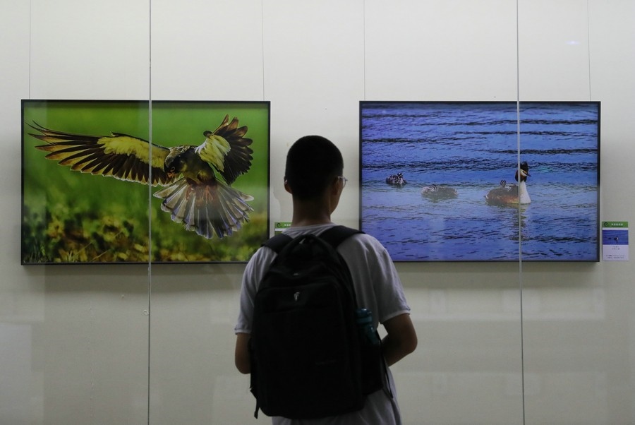 游客參觀“多彩的家園”野生動(dòng)植物攝影作品展