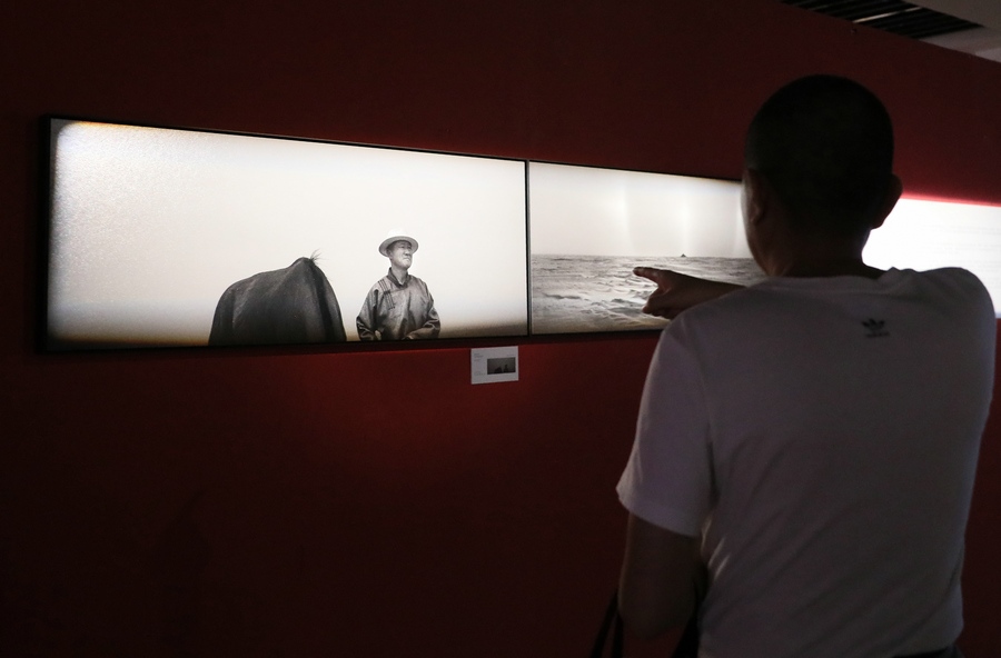 游客在參觀“蒙古馬精神”阿音攝影作品展