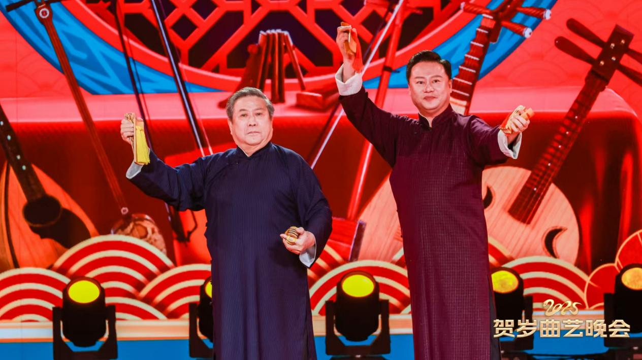馮鞏、李志強(qiáng)的相聲《蛇年大吉》以成語接龍送祝福,嗨翻全場;張志寬師徒的快板書《立井架》展現(xiàn)李派快板的獨(dú)特魅力;盛小云、高博文的評彈和馮欣蕊、夏炎的京韻大鼓,盡顯傳統(tǒng)曲藝的優(yōu)雅韻味。