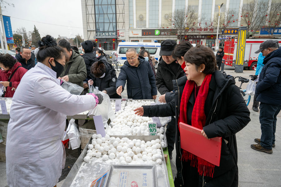 2月11日,隨著正月十五元宵節(jié)臨近,在呼和浩特市舊城北門沿街商鋪,傳統(tǒng)手工元宵迎來銷售高峰。芝麻餡的醇厚香甜、花生餡的濃郁香脆、榴蓮餡的獨特馥郁,市民根據(jù)自身喜好挑選不同口味的元宵,圓滾滾的元宵象征著團(tuán)團(tuán)圓圓,也勾起了人們對傳統(tǒng)手藝的美好回憶。