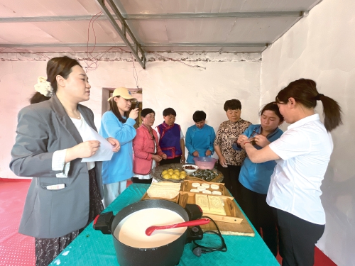 2025年端午節(jié)前,巴仁哲里木鎮(zhèn)宣傳委員、宣傳干事在寶日根嘎查拍攝蒙古族和漢族群眾一起包粽子、制作奶皮子的畫面?!∞r(nóng)民日?qǐng)?bào)·中國農(nóng)網(wǎng)記者 劉杰 攝